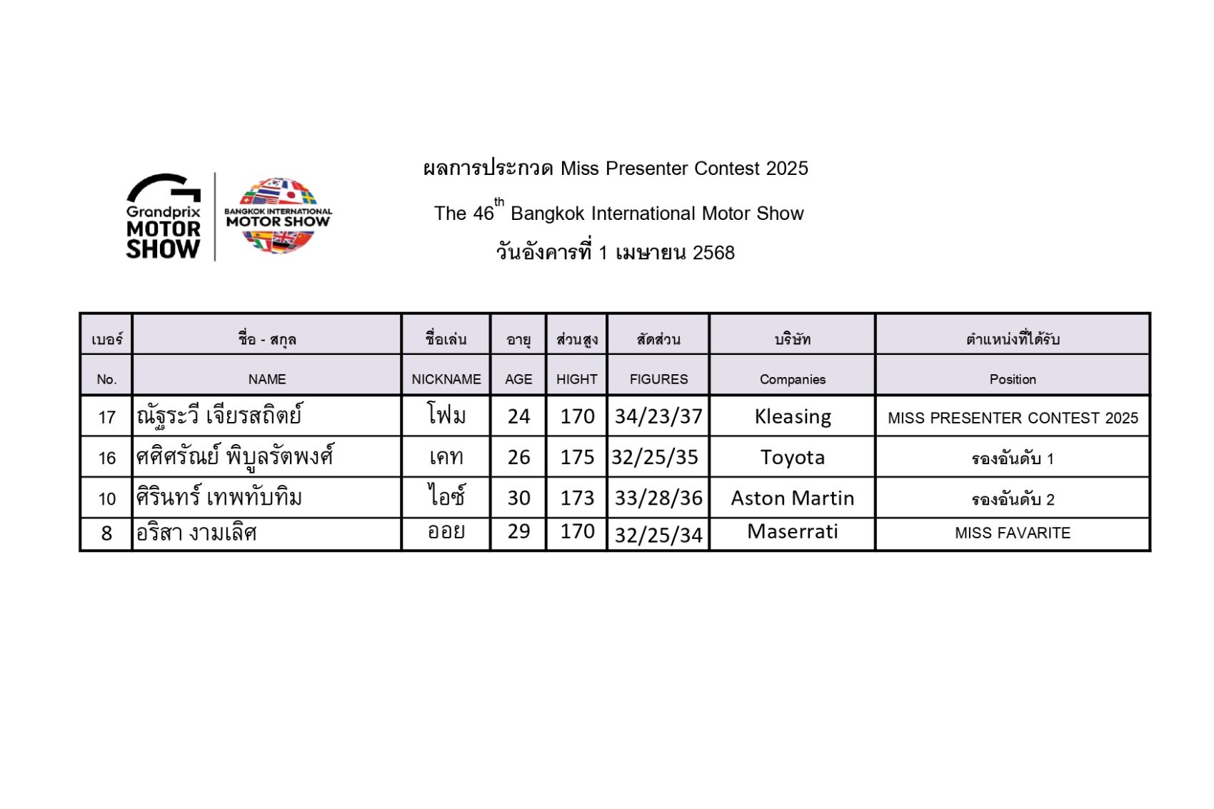 By corp_admin / April 2, 2025 ผลการประกวด Miss Presenter Contest 2025 April 2, 2025 LATEST บมจ.กรังด์ปรีซ์ อินเตอร์เนชั่นแนล ฉลองครบรอบ 55 ปี แห่งพลังที่ไม่มีวันหยุดยั้ง “UNSTOPPABLE 55: 55 Years of Endless Drive” พร้อมเดินหน้าสู่อนาคตของวงการยานยนต์ไทย กรังด์ปรีซ์ฯ จัดการแข่งขันกอล์ฟกระชับมิตร “GRANDPRIX GOLF CHAMPIONSHIP 2025” รวมพันธมิตรธุรกิจต่อยอดความความสัมพันธ์ที่ยั่งยืน DUNK PHUNKORN – THE GOLDEN ERA CONCERT กรังด์ปรีซ์ฯ มอบรางวัลผู้โชคดี จากงาน บางกอก อินเตอร์เนชั่นแนล มอเตอร์โชว์ ครั้งที่ 46 รวมมูลค่ากว่า 1.94 ล้านบาท Grand Prix International Public Company Limited would like to express our sincere gratitude for your support
