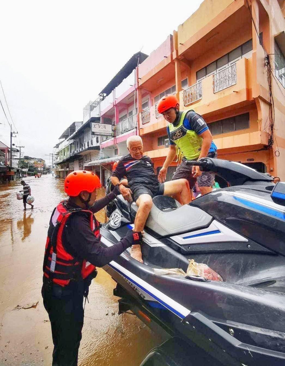 โดยนำเรือเวฟรันเนอร์ยามาฮ่า ออกให้การช่วยเหลือนำผู้สูงอายุออกจากพื้นที่ รวมถึงนำส่งเครื่องอุปโภคบริโภคให้กับผู้ที่ได้รับความเดือดร้อนในพื้นที่ ตลาดไม้ลุงขน, บ้านเกาะทราย, หมู่บ้านปิยาพร และ ผามควาย จ.เชียงราย