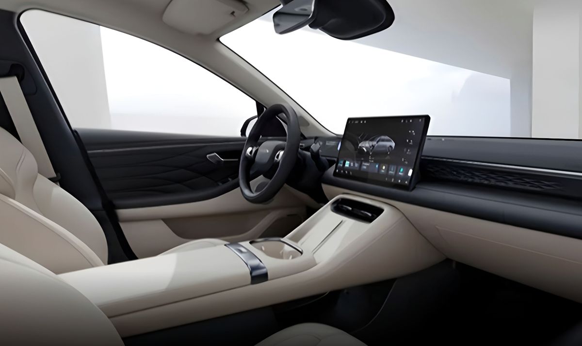 ห้องโดยสารของรถมาในสไตล์ทูโทนสีเบจและดำพร้อมกับเน้นความเรียบโล่ง มีจอทัชสกรีนแบบลอยตรงกลางแผงแดชบอร์ด ขณะที่คอนโซลกลางมีทั้งที่ชาร์จไร้สายและช่องวางแก้วน้ำ