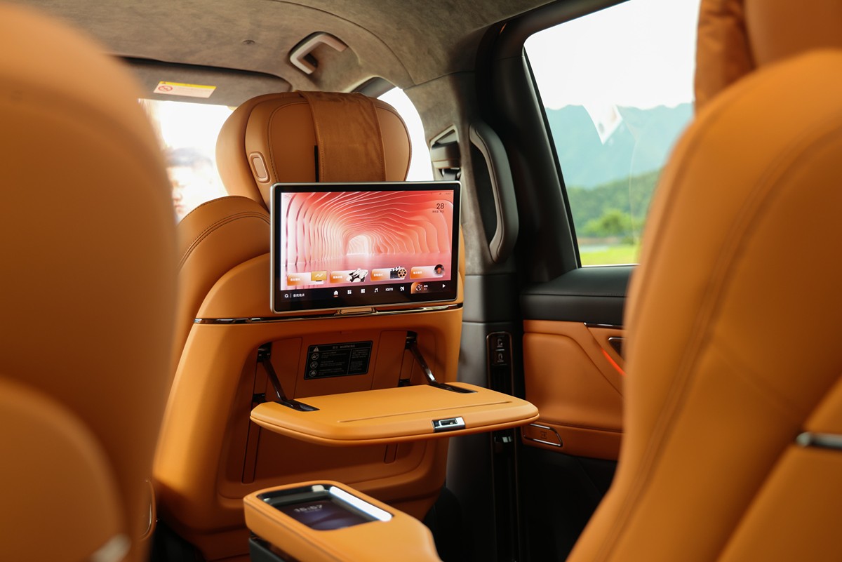 การสร้างบรรยากาศในห้องโดยสารยังรวมไปถึงมีหลังคากระจกพาโนรามิกพื้นที่ 2.18 ตารางเมตรเพื่อความรู้สึกโปร่งโล่งพร้อมกับสามารถปรับลดแสงได้ นอกจากนี้ด้านหลังเบาะหน้ายังมีจอติดไว้ให้ผู้อยู่ในเบาะแถวที่ 2 ใช้งาน ส่วนเบาะหน้าของรถมีทั้งจอแสดงข้อมูลการขับดิจิตอลลและจอ Infotainment ลอยตัวขนาดใหญ่ พร้อมมีแพลตฟอร์มดิจิตอล L-OS เพื่อการทำงานดิจิตอลต่างๆ ตั้งแต่ระบบช่วยขับขี่ไปจนถึงค็อกพิตดิจิตอล