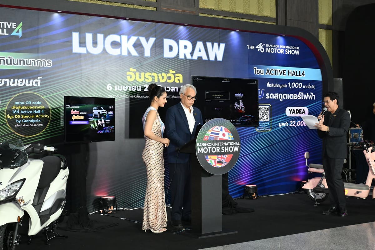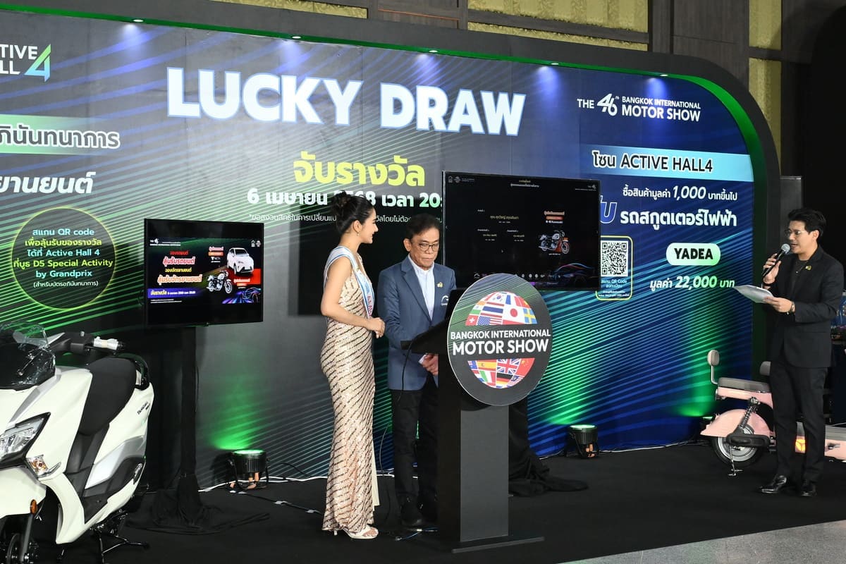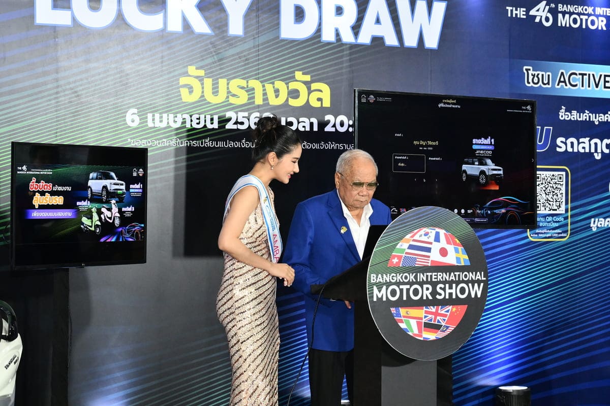 การจับรางวัลถูกจัดขึ้น ณ อิมแพ็คเมืองทองธานี บริเวณจุดโชว์รถรางวัล LUCKY DRAW ในวันที่ 6 เมษายน 2568 เวลา 21.00 น. ต่อหน้าสักขีพยาน และคณะกรรมการผู้ทรงเกียรติ นำโดย ดร.ปราจิน เอี่ยมลำเนา ประธานการจัดงานบางกอก อินเตอร์เนชันแนล มอเตอร์โชว์ ครั้งที่ 46 คุณจาตุรนต์ โกมลมิศร์ คุณอโณทัย เอี่ยมลำเนา คุณพีระพงศ์ เอี่ยมลำเนา รองประธานการจัดงานบางกอก อินเตอร์เนชั่นแนล มอเตอร์โชว์ รวมทั้งคุณปิยนุช แจ่มศิริพรหม ผู้ช่วยประธานเจ้าหน้าที่บริหาร/ ประธานเจ้าหน้าที่บริหารลูกค้า บริษัทกรังด์ปรีซ์ อินเตอร์เนชั่นแนล จำกัด (มหาชน)