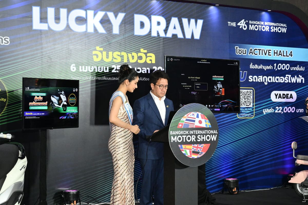 ต่อด้วยการจับรางวัล Random รถยนต์ไฟฟ้าสำหรับผู้ที่ซื้อบัตรเข้าชมงาน และตอบแบบสอบถาม ส่งข้อมูลเพื่อทำการชิงโชคลุ้นรับรางวัลจำนวน 1 คัน ได้แก่
