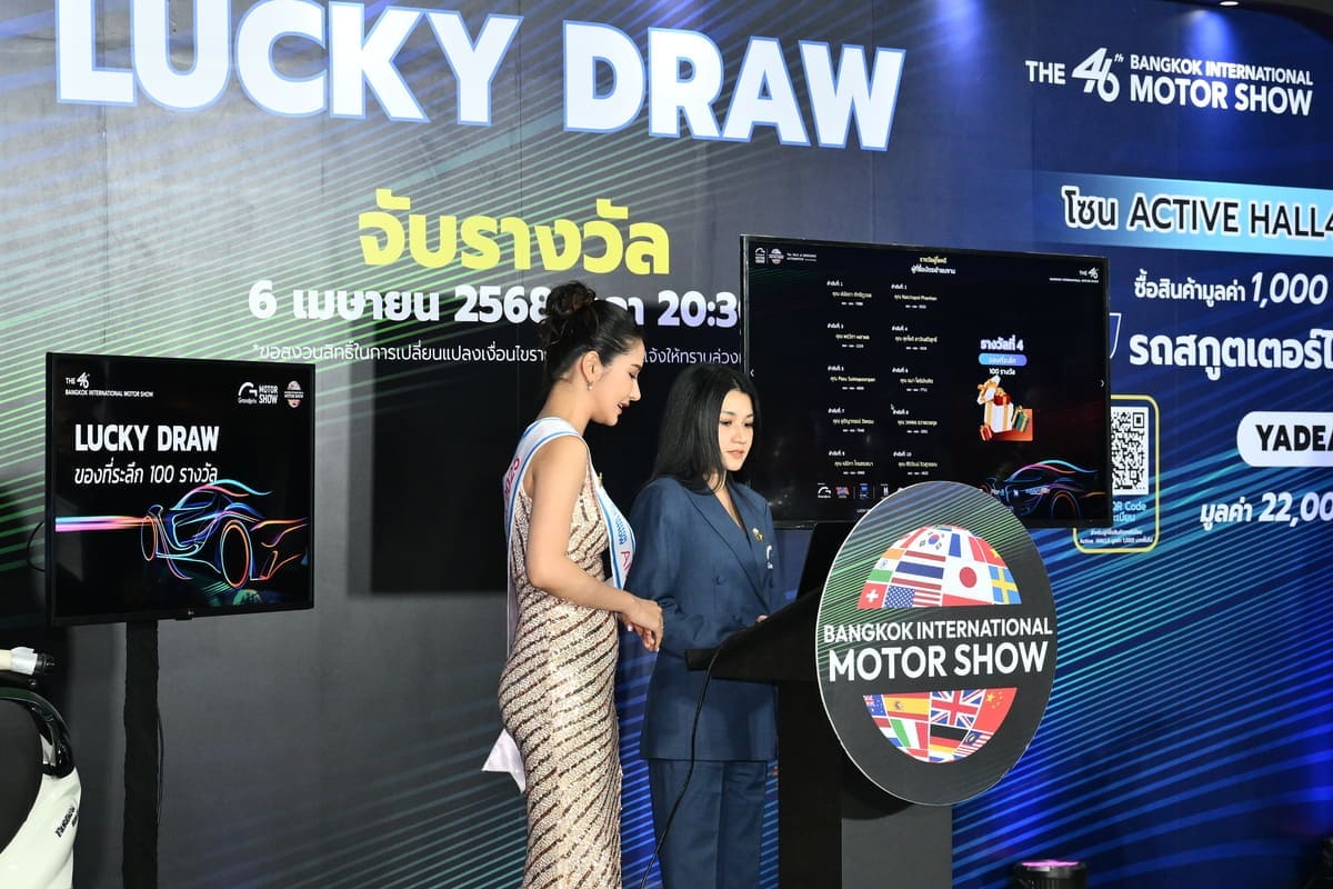 ปิดฉากลงอย่างยิ่งใหญ่ และเต็มไปด้วยความประทับใจ สำหรับงานบางกอก อินเตอร์เนชันแนล มอเตอร์โชว์ ปี 2025 ซึ่งจัดขึ้นระหว่างวันที่ 26 มีนาคม –  6 เมษายน 2568 สำหรับปีนี้ ได้รับการตอบรับจากค่ายรถยนต์ และจักรยานยนต์จำนวนมาก รวมถึงผู้เข้าชมงานที่แวะเวียนเข้ามาอย่างคึกคักตั้งแต่วันแรกจนวันสุดท้าย ทางคณะผู้จัดงาน จึงขอขอบพระคุณผู้เข้าชมงานทุกท่านเป็นอย่างสูง จึงได้ทำการจัดงานมอบรางวัลแทนคำขอบคุณผู้เข้าชมงานทุกท่านที่ได้มีการตอบแบบสอบถามสำรวจความพึงพอใจจากผู้ที่ซื้อบัตรเข้าชมงานผ่าน LINE OFFICAL ลุ้นรับ รางวัลรถยนต์ไฟฟ้า จำนวน 1 รางวัล, รถจักรยานยนต์ จำนวน 2 รางวัล, รางวัลผู้โชคดีจากการจองรถยนต์ ลุ้นรับรางวัลรถยนต์ จำนวน 1 รางวัล, จองรถจักรยานยนต์ ลุ้นรับรางวัลรถจักรยานยนต์ จำนวน  1 รางวัล และรางวัล ‘ซื้อสินค้ามูลค่า 1,000 บาทขึ้นไป โซน Activity Hall4 มีสิทธิ์ลุ้นรับสกู๊ตเตอร์ไฟฟ้า 1 รางวัล’ รวมถึงรางวัลสำหรับผู้ลงทะเบียนบัตรอภินันทนาการ ก็มีสิทธิ์ลุ้นรับ รถจักรยานยนต์ จำนวน 1 รางวัล และรางวัลของที่ระลึก ในงานบางกอก อินเตอร์เนชั่นแนล มอเตอร์โชว์ ครั้งที่ 46 จำนวน 100 รางวัล รวมมูลค่าทั้งสิ้น 1,933,100 บาท
