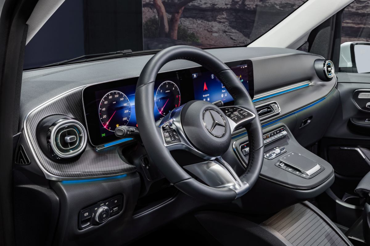 ห้องโดยสารของรถแวนที่เป็นรถยนต์นั่งมีการปรับในส่วนดิจิตอลค็อกพิตมีจอขนาด 12.3 นิ้วคู่อยู่ในกรอบเดียวกัน ขณะที่แผงแดชบอร์ดดูมีความใกล้เคียงกับรถยนต์นั่งและรถเอสยูวีของค่ายดาวสามแฉกมากขึ้น มีช่องระบบปรับอากาศและไฟ Ambient Lighting ใหม่ ขณะที่ Vito และ eVito ซึ่งเป็นรถแวนเพื่อการพาณิชย์มี Infotainment ขนาด 10.25 นิ้วและจอแสดงข้อมูลผู้ขับขนาด 5.5 นิ้ว พร้อมกับมีแผงแดชบอร์ดที่เน้นการใช้งาน
