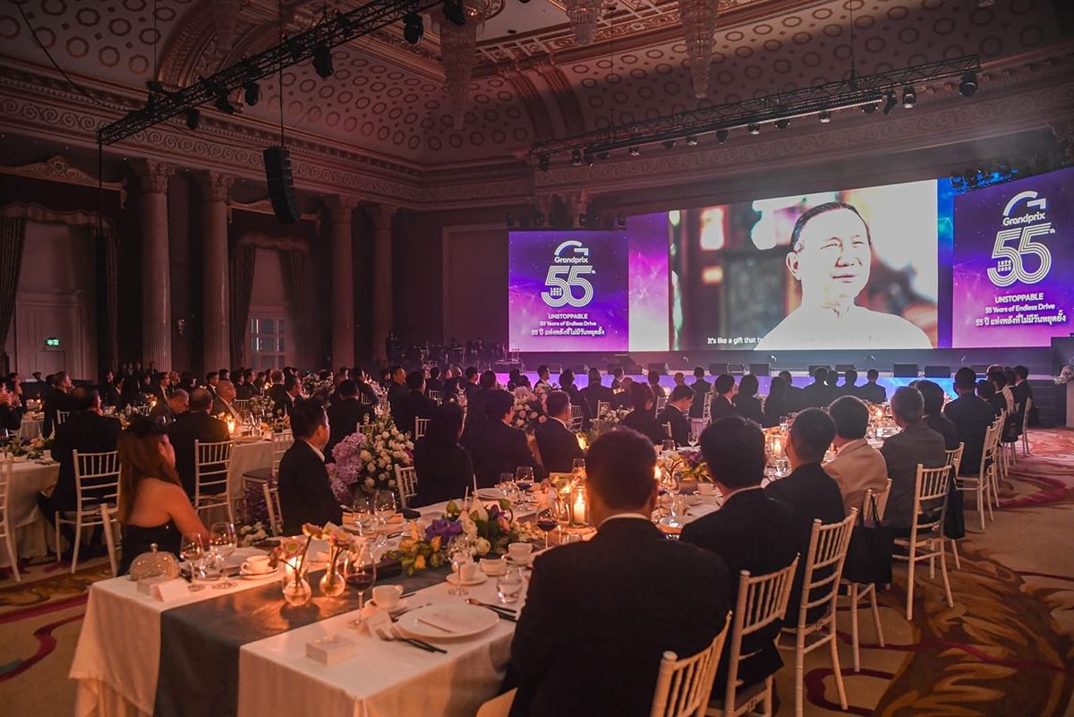 บรรยากาศภายในงานอบอุ่นและเป็นกันเอง เริ่มตั้งแต่แขกผู้ทรงเกียรติทยอยมาลงทะเบียน โดยมีคณะผู้บริหารให้การต้อนรับ ก่อนเข้าสู่ห้องจัดเลี้ยง ทุกท่านได้ชมนิทรรศการ “GRANDPRIX Unstoppable 55th” ซึ่งบอกเล่าเส้นทางความมุ่งมั่นของกรังด์ปรีซ์ฯ จากจุดเริ่มต้นในอดีตสู่การเติบโตและเปลี่ยนผ่านในแต่ละยุคสมัยจนถึงปัจจุบัน ภายในงานยังมี THE SOCIAL LOUNGE “Connect & Celebrate”, งานเลี้ยงอาหารค่ำพร้อมการแสดงสดชุด “Symphony of Motion” และการแสดงแสงสีเสียง “Drive Beyond Time” ก่อนเข้าสู่การนำเสนอ VTR ถ่ายทอดแรงบันดาลใจจาก ดร.ปราจิน เอี่ยมลำเนา ผู้ก่อตั้งบริษัทฯ