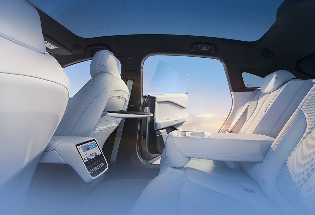 ห้องโดยสารของรถมีจอตรงกลางขนาด 15.6 นิ้วทำงานโดยชิป Qualcomm Snapdragon 8295P ส่วนหลังพวงมาลัย 2 ก้านมีจอขนาดเล็กสำหรับแสดงข้อมูลการขับ ขณะที่คอนโซลกลางมีทั้ง 2 ที่ชาร์จไร้สาย 50W และ 2 ช่องวางแก้วน้ำ
